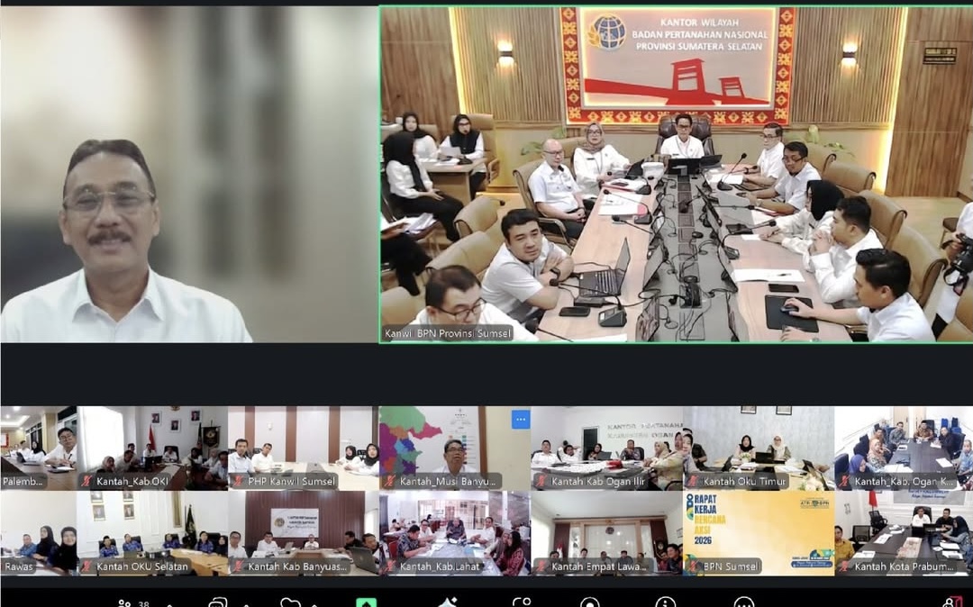 PALEMBANG – Kantor Wilayah Badan Pertanahan Nasional (BPN) Sumatra Selatan melaksanakan Rapat Kerja (RAKER) Rencana Aksi Tahun 2026 dengan 17 Kantor Pertanahan Kabupaten/Kota se-Sumsel.