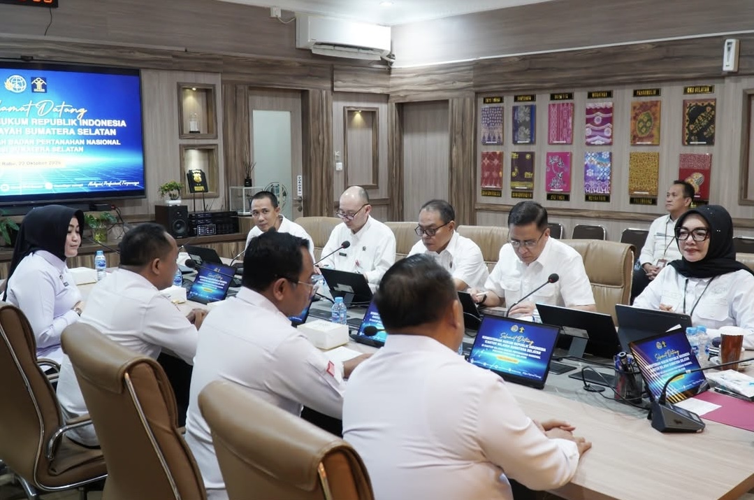 PALEMBANG – Kepala Kantor Wilayah (Kakanwil) BPN Sumatra Selatan Asnawati menerima audiensi dari Kantor Wilayah (Kanwil) Kementerian Hukum Sumsel, Rabu, (22/10/25).