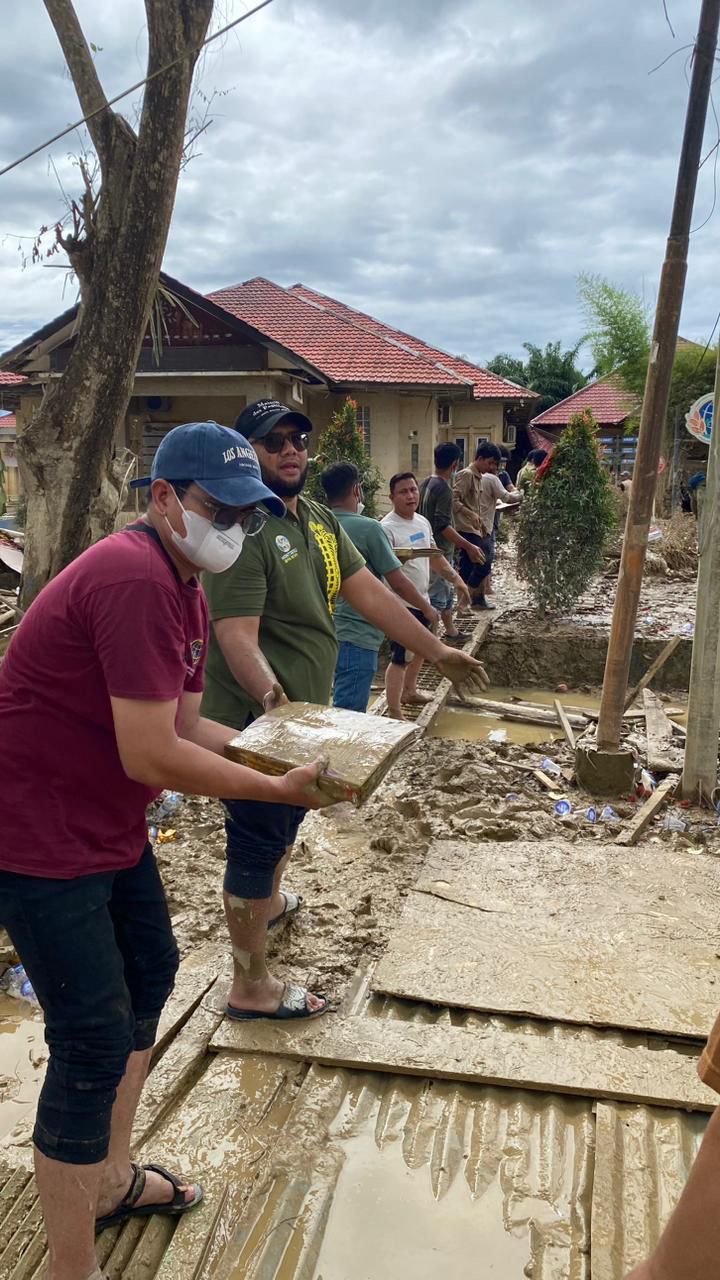 Tak hanya genangan air, lumpur setinggi 1-2 meter turut menutup kawasan permukiman, fasilitas umum, hingga perkantoran pemerintahan, memperparah dampak kerusakan yang ditimbulkan.