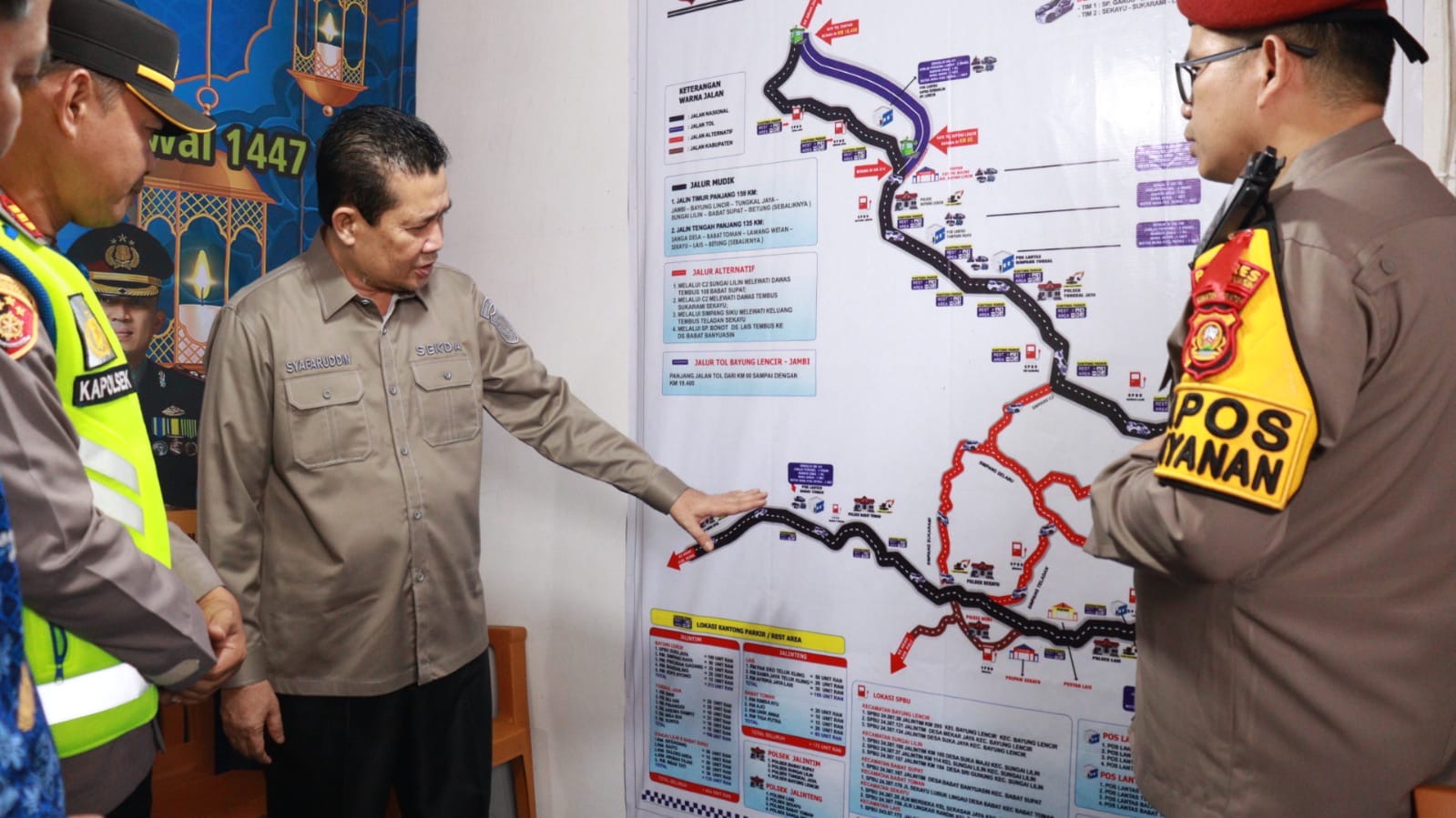 Di setiap posko, juga tersedia informasi penting seperti lokasi kantong parkir, rest area, SPBU, hingga tempat ibadah, guna memudahkan masyarakat selama perjalanan.